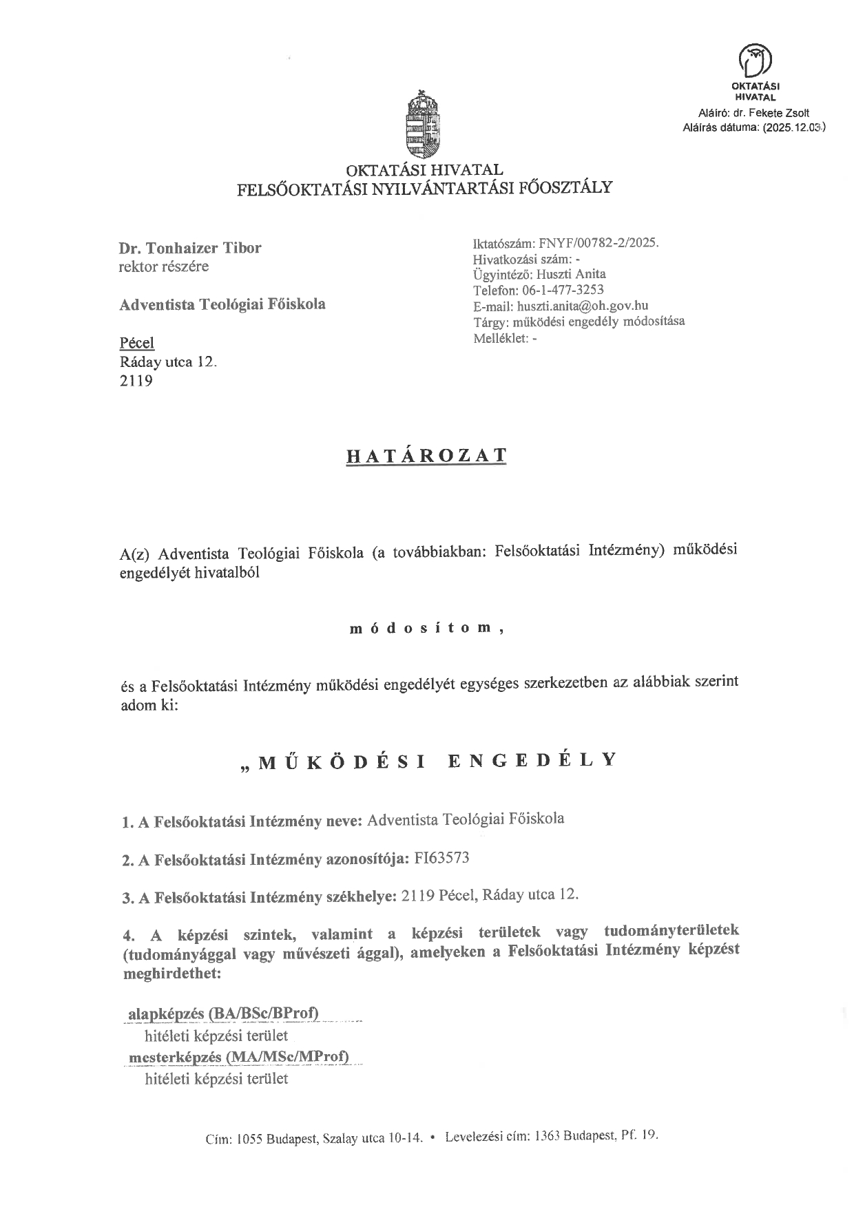 A MAB Információs Rendszerében megtekintheti Intézményünk nyilvános akkreditációs anyagait: